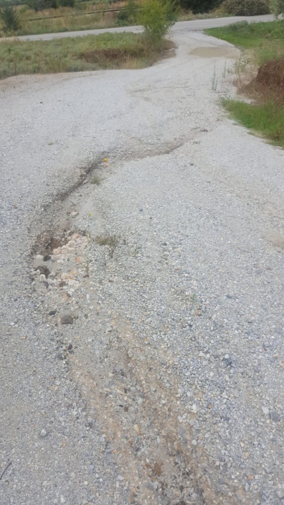 Στον 1ο δρόμο δεξιά μετά τη διάβαση του τρένου πάνω από τον Περιφερειακό στο δρόμο προς Μελισσάτικα έχει υποχωρήσει το έδαφος και δημιουργήθηκαν αρκετές λακκούβες. Αυτό έχει ως αποτέλεσμα να καθίσταται δύσκολη η διέλευση των οχημάτων προκαλώντας σοβαρές ζημιές σε αυτά. Η πρόσβαση στα σπίτια που δεν έχουν άλλη εναλλακτική διαδρομή γίνεται με μεγάλη δυσκολία. [...]
