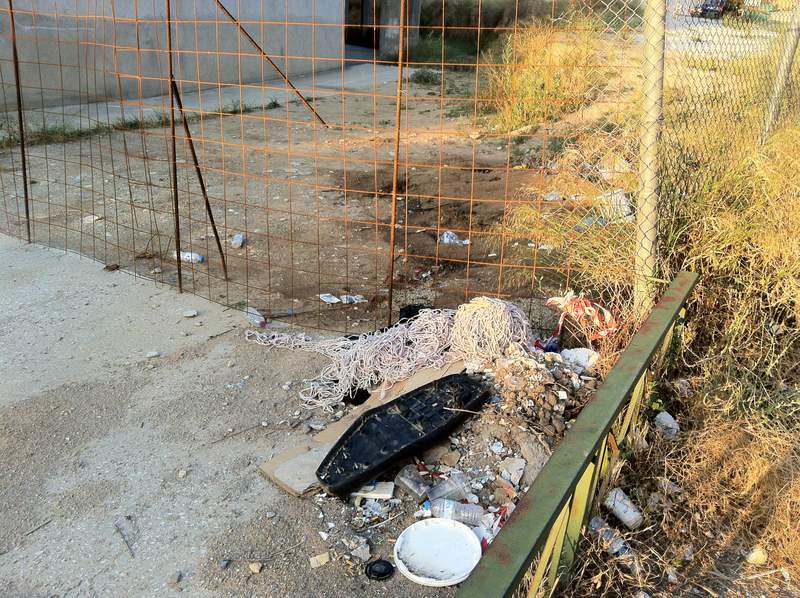 Αυτός ο όγκος άμμου που μαζεύει σκουπίδια, που πετάνε πάνω ή δίπλα όποιο γκαζόν κουρεύουν, σκορπίζει παντού και βρωμίζει τους τοίχους δεν είναι επιτέλους δυνατόν να συμμαζευτεί κάπως; Γνωρίζω ότι υπάρχουν ειδικά μεγάλα τσουβάλια (διαμέτρου ενός μέτρου περίπου) χαμηλά για συγκέντρωση τέτοιων αδρανών υλικών. Δεν γίνεται να αγοραστούν περίπου 2-4 τέτοιοι σάκοι αδρανών υλικών;