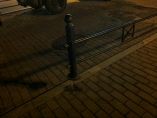 Στην φωτογραφία ένα επικίνδυνα ξεχαρβαλωμένο κιγκλίδωμα κάπου στον πεζόδρομο της Αργοναυτών (δυστυχώς δεν θυμάμαι ακριβώς τον κάθετο, αλλά κοντά στου Παπαδή). Όπως και να έχει, είναι λάθος η επιλογή του συγκεκριμένου τύπου αφού κλείνει καθέτως τον πεζόδρομο και αν τύχει (που τυχαίνει) να παρκάρει κάποιος στα εκατέρωθεν ανοίγματα, έχει φράξει ΟΛΟ τον πεζόδρομο. Βάλτε κολονάκια. [...]