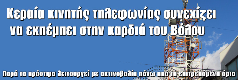 Egli continua a trasmettere antenna del telefono cellulare nel cuore di Volos Nonostante multe opere con radiazioni superiori ai limiti consentiti. Sul tetto della OTE via Venizelos con Socrate non ancora rimossa dal Servizio Progettazione del Comune di base di Volos e la società di telefonia mobile antenna illegalmente installato [...]