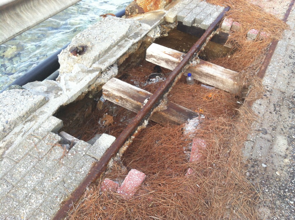 Πρωτίστως στη στάση πριν την Παναγία Τρύπα (θα σκοτωθεί άνθρωπος) αλλά και σε άλλα σημεία μέχρι την Αγριά ΤΕΡΑΣΤΙΕΣ οπές από καταρρεύσεις. Η λύση απλή: Τσιμέντο και επανατοποθέτηση. Δεν είναι πάνω από 5-10 τ.μ. σύνολο, αλλά επικίνδυνα.