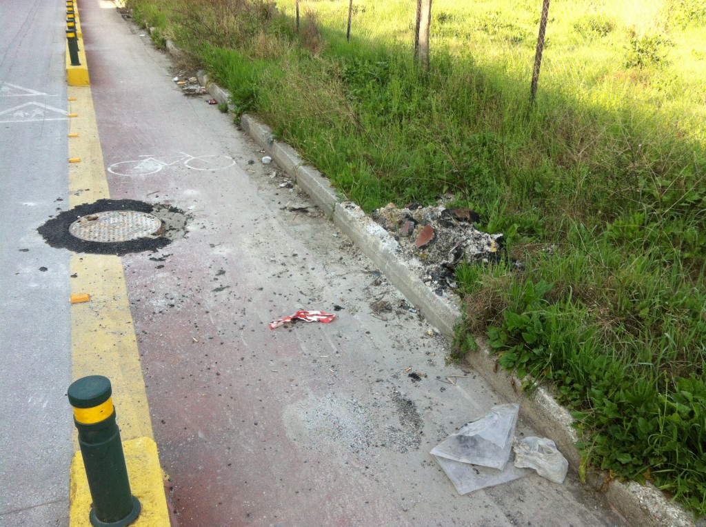 3) Τα μπάζα από τη δουλειά πετάχτηκαν στο έστω ανύπαρκτο πεζοδρόμιο (αλήθεια, έτσι τον βόλεψε τον εργάτη;)