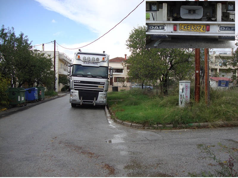 Τα οχήματα δεν έχουν ορατότητα εξ αιτίας του φορτηγού με κίνδυνο να προκληθούν ατυχήματα.