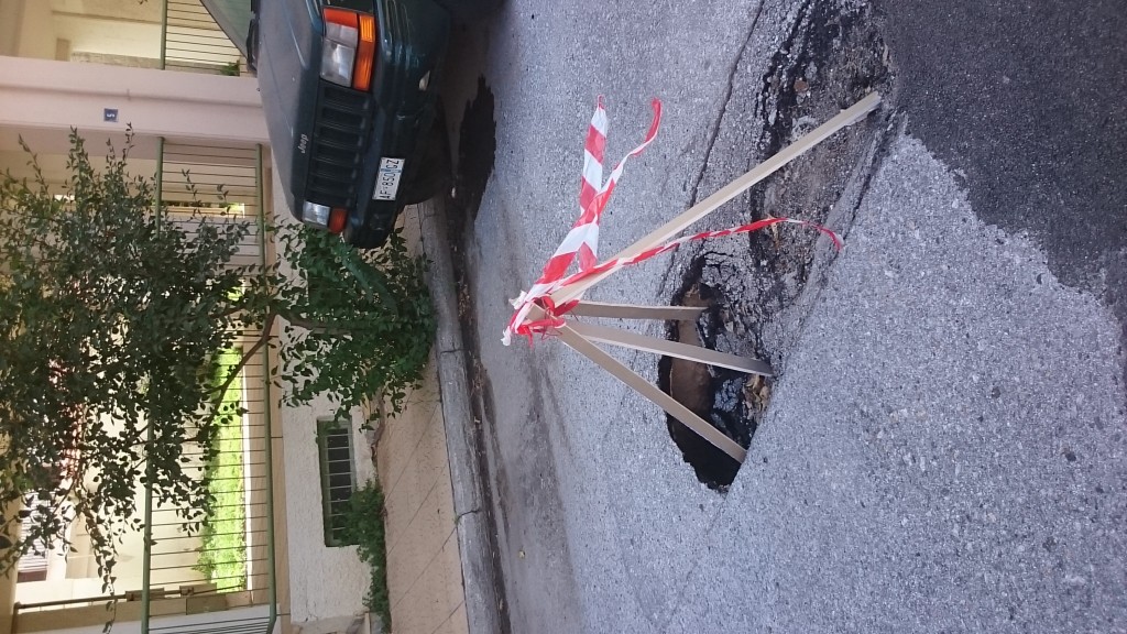Παρακαλούμε για το πρόβλημα μια βαθιάς κι επικίνδυνης λακούβας στο ίδιο σημείο τρίτη φορά μέσα σε 1-2 years.