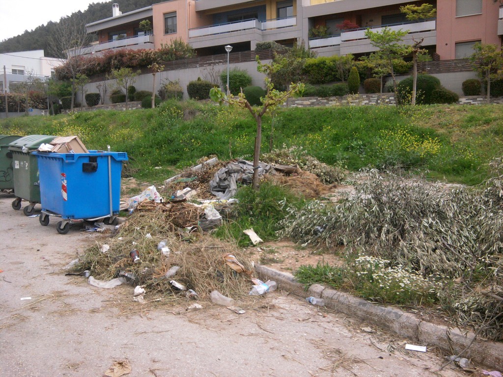 πεταμενα κλαδια απο ελιες,σκουπιδια πεταμενα ,απο κοπη χορτων διασκορπισμενα παντου