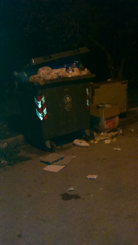 Καλο σας μεσημερι.Αυτην ειναι η συνηθισμενη εικονα στην γειτονια μας (Οδ.Ανδρουτσου 9-Μενανδρου) καθε Κυριακη βραδυ…Ενας μοναδικος καδος που υπαρχει στην γειτονια γεμιζει απο πολυ νωρις της Κυριακης με συνεπεια διαφορα αδεσποτακια της περιοχης (σκυλια και γατες που φροντιζω και εγω μαζι με αλλους γειτονες (προς θεου δεν φταινε τα ζωντανα με τιποτα )) ανεβαινουν στον καδο και σκορπουν τα σκουπιδια που δυστυχως οι ασυνειδητοι πολιτες του δημου και γειτονες μου αφηνουν στον ηδη γεματο καδο…Θα ηθελα να παρακαλεσω τον Δημο μηπως γινεται να μας φερουν ακομη εναν καδο αποοριματων και αν ειναι δυνατον και εναν καδο ανακυκλωσης για να βαζουμε τα ανακυκλωσυμα απορριματα.