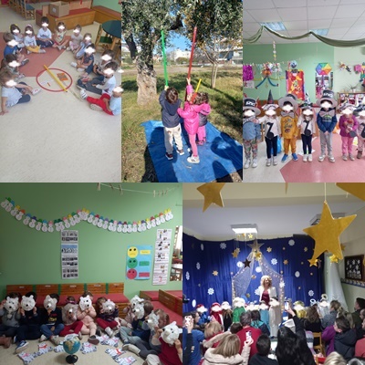 Κατά τη διάρκεια της σχολικής χρονιάς πραγματοποιήθηκαν γιορτές - εργαστήρια για τα Χριστούγεννα και τις Απόκριες με τη συμμετοχή των γονέων. Κουκλοθεατρικές παραστάσεις τα Χριστούγεννα με θέμα: «Η Μάγισσα Στριμάδη και τα Χριστούγεννα» και το Πάσχα με θέμα: «Το μικρό ποντικάκι και τα Πασχαλινά αυγά». Επιπλέον πραγματοποιήθηκαν δράσεις για την Παγκόσμια Ημέρα Τρίτης Ηλικίας και την Παγκόσμια Ημέρα Παιδικού Βιβλίου με παρουσίαση βιβλίου «η σκάλα της Αγάπης» της συγγραφέως Μαρω Αισώπου.. Τα παιδιά συμμετείχαν επίσης σε διαδραστικά εργαστήρια για την παρασκευή Χριστόψωμου, την παραγωγή Μούστου και Κρασιού και συνθέσεις εικόνων με φρούτα εποχής. Δράσεις οικολογικής ευαισθητοποίησης για το Περιβάλλον με θέμα: «Αγαπώ την γη και ζω εκεί».