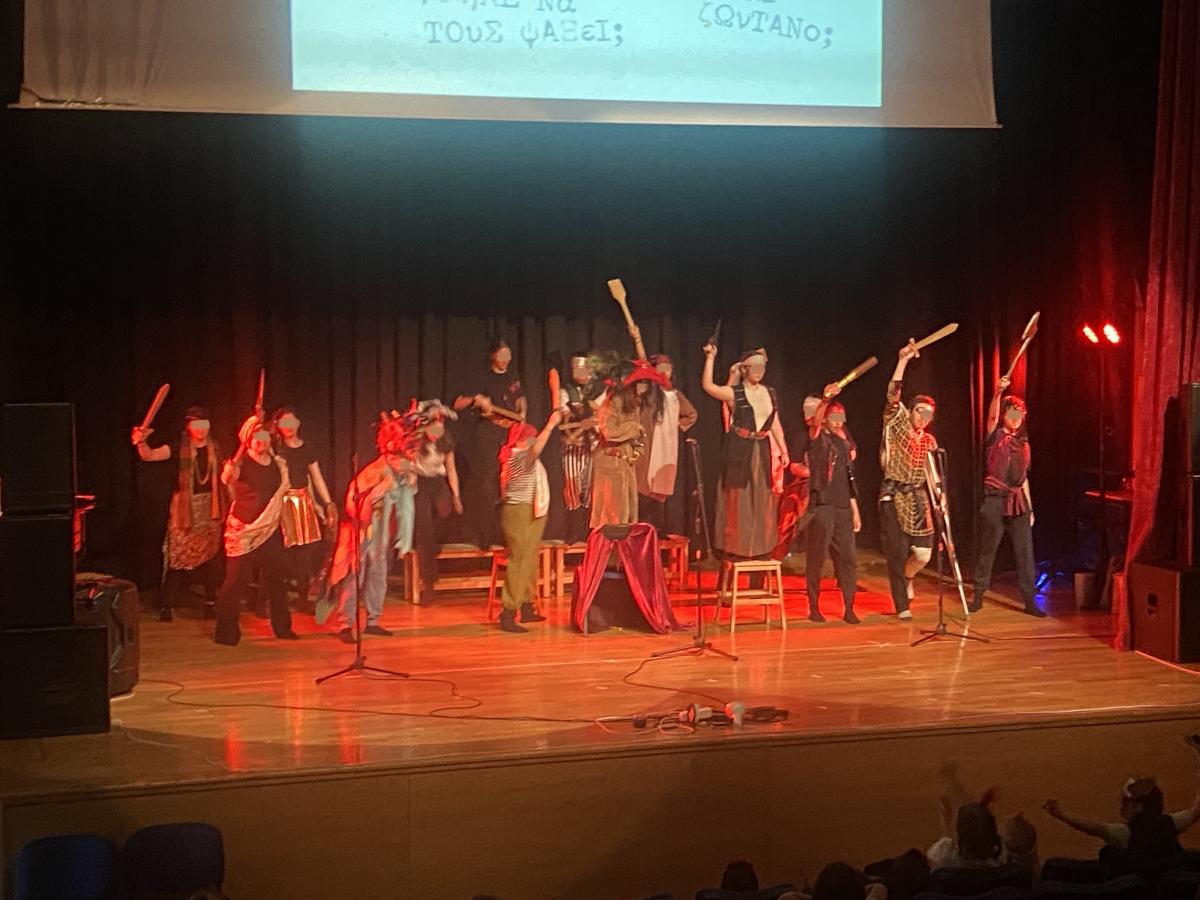 Παρουσίαση από το τμήμα της Στ’ Τάξης του Δημοτικού Σχολείου Άλλης Μεριάς Βόλου η δραματοποιημένη αφήγηση «Ένα κορίτσι φτερουγίζει στον Κεραμεικό»,βασισμένη στο κείμενο του Χρήστου Μπουλώτη.