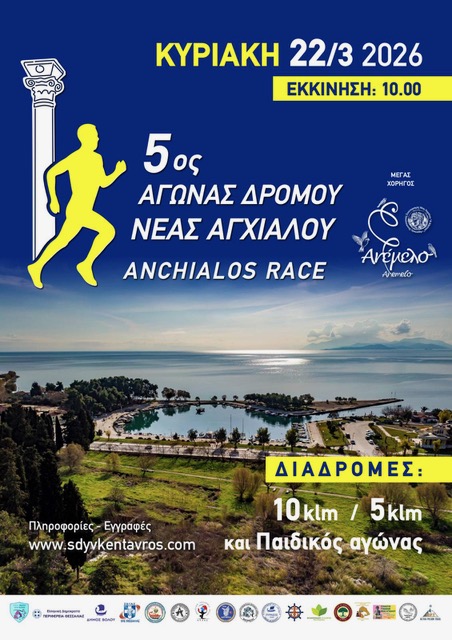 Το γραφικό λιμανάκι της Ν. Αγχιάλου ετοιμάζεται να υποδεχτεί στις 22 Μαρτίου 2026, τους δρομείς του 5ου Αγώνα Δρόμου των 10χλμ. και 5 χλμ. καθώς και του παιδικού αγώνα " Feel my power Feninna" , που είναι αφιερωμένος στη μνήμη της 16χρονης Φενίννας Βασιλού. Η εκκίνηση των πέντε χιλιομέτρων θα δοθεί στις 10:00, ενώ των δέκα χιλιόμετρων στις 11:00, ο αγώνας θα υποστηρίζεται από σύστημα ηλεκτρονικής χρονομέτρησης και σε όλους τους συμμετέχοντες θα δοθούν αναμνηστικά μετάλλια και τεχνικά μπλουζάκια. Οι εγγραφές γίνονται στη διεύθυνση: http://www.sdyvkentavros.com/anchialosrace/ Η διαδρομή είναι επίπεδη, ασφάλτινη και διασχίζει τόσο την παραλία της Ν. Αγχιάλου, αλλά και τους περίφημους αμπελώνες που παράγεται το «Ανέμελο» του Αγροτικού Παραγωγικού Συνεταιρισμού « Η Δήμητρα», που είναι ο μεγάλος χορηγός του αγώνα. |